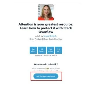 Click “Add additional talks” to select specific sessions or “Add all talks to my calendar”